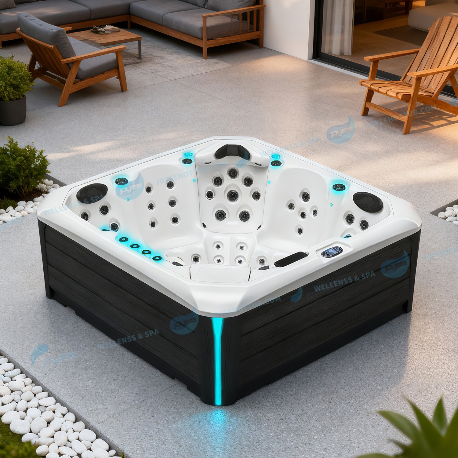 Joyee is a top hot tub manufacturer, known for its exquisite craftsmanship and strict adherence to international quality standards such as ISO 9001. We have a large modern manufacturing plant covering an area of 25,000 square feet, equipped with advanced equipment, and are able to provide fully customized hot tubs. This means that we can build a hot tub according to your needs, including the nozzle position and seat design. From the durable shell to the energy-saving heating system, every component is carefully designed to ensure optimal performance and long life.
