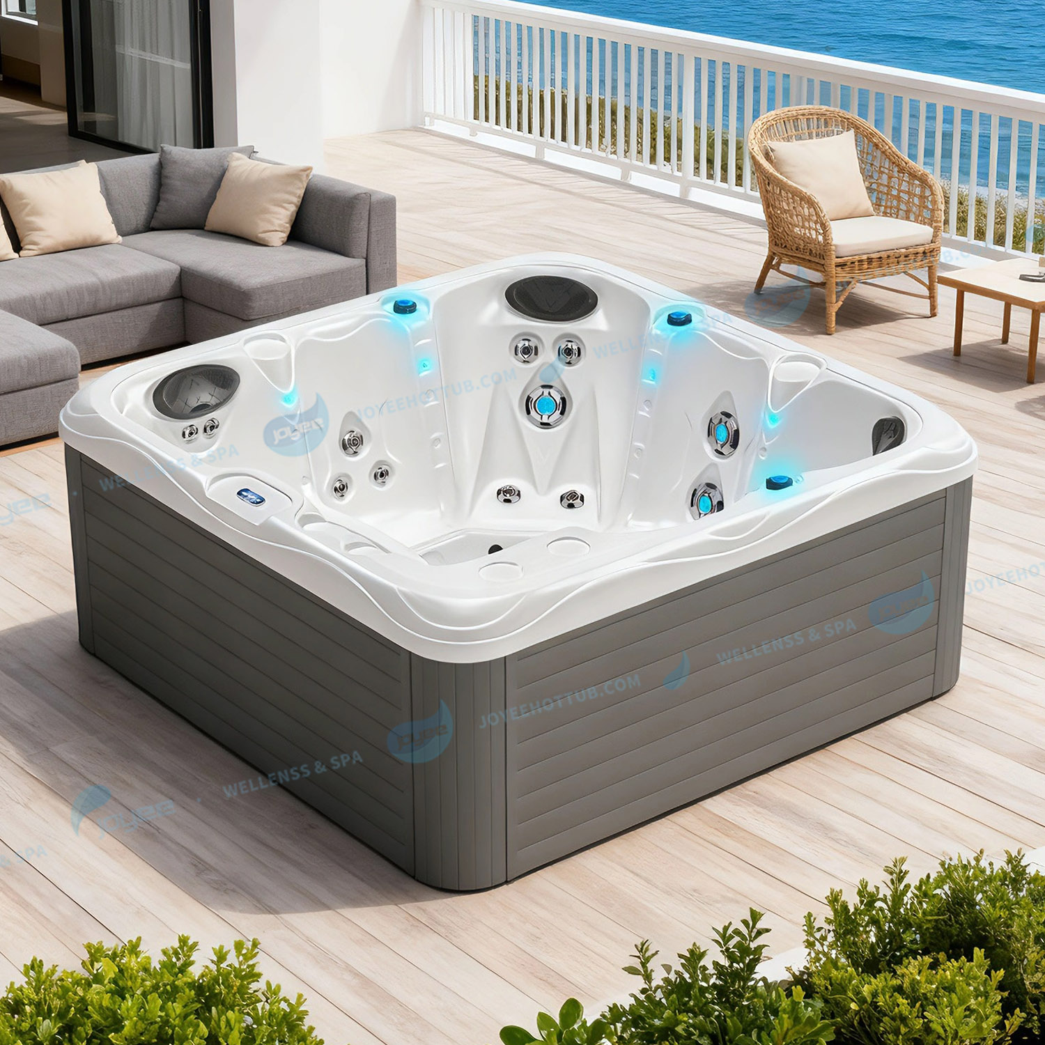 With spacious dimensions of 2000*2000*830 mm, it can accommodate up to 6 people with one lounger and five seats, making it the perfect choice for family vacations. Made from high-quality Aristech Acrylic from the USA, it ensures durability and easy maintenance.